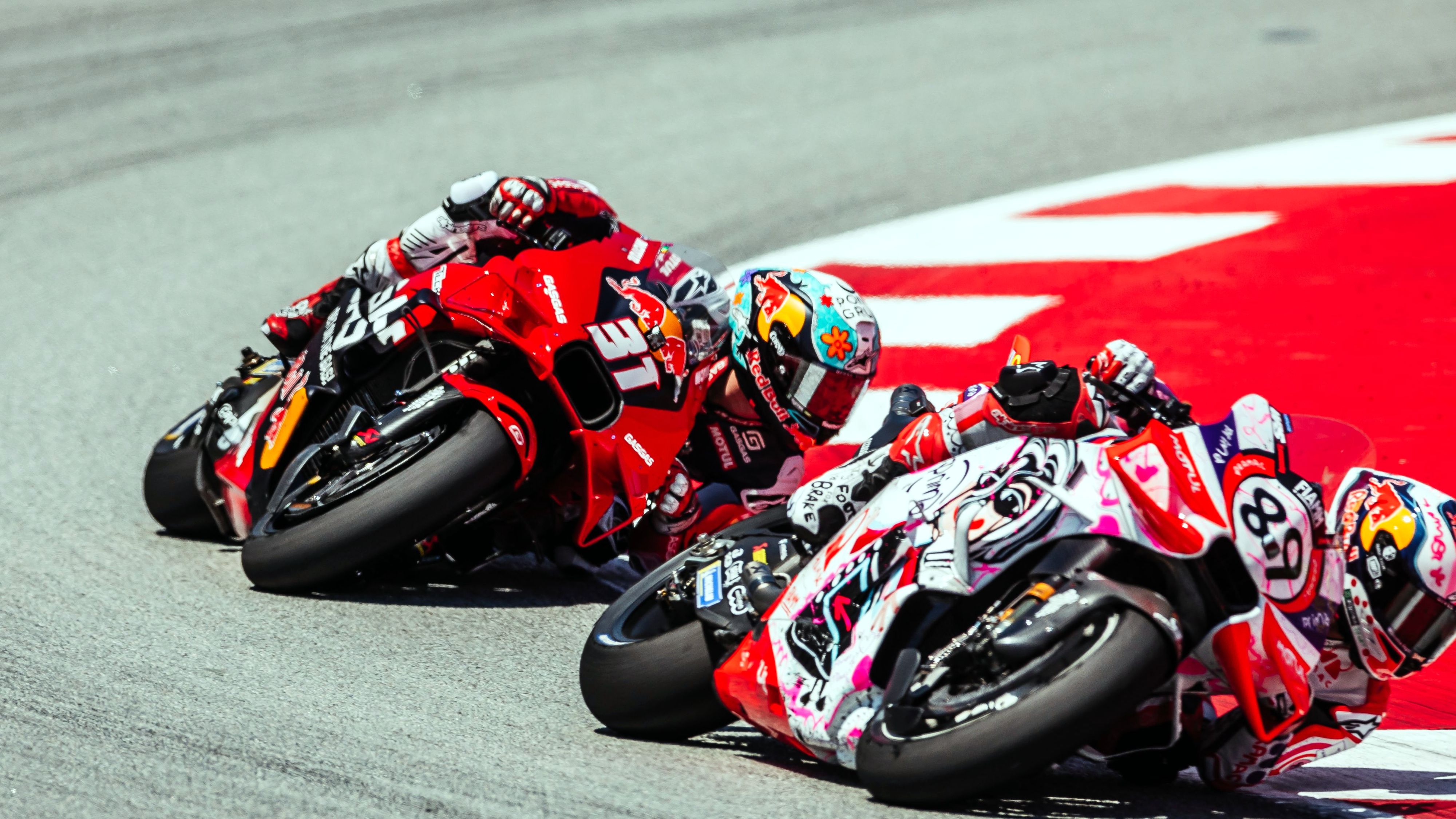 Now aged of twenty-years old and one day, we are, without taking it too seriously, starting to count the days left for Pedro Acosta to become the youngest premier class winner, and to take the record of Marc Marquez (twenty years old and sixty-three days). Stats aside, the rookie had delivered an impressive weekend so far in Catalunya, being constantly amongst the fastest in all sessions, and even gifting himself with a third place in yesterday’s sprint, on his birthday. As lights went out at 14:00 local time today under the Catalan sun, Acosta did just like yesterday, meaning taking a rocket start from P5 to P2 at the first braking in turn 1, behind Francesco Bagnaia, with Jorge Martin in his back wheel. Second in the first few laps, he tried overtaking Bagnaia but got himself a little scare, having to save a potential crash. He eased things down a bit, in third, on the chase for the world champion and his runner up. There are worse things. Eventually, Martin and himself made their way to the front over Bagnaia. Acosta was getting the hot laps in, and a 1'39.664 in lap 7 (which is the new record in race), allowed him to grow his gap with Pecco to 0.76 seconds. The chase for the first win was truly on, and the rookie was providing us with a solid and smart performance, working hard on tyres management. Unfortunately, the dream faded away when he crashed in the tenth lap, falling off winning contention while battling with Jorge Martin. Not giving up, the rookie rejoined and made it all the way from P20 at the back to P13 at the checkered flag, to score a few points. A small reward after what had been an incredible weekend for the Red Bull GASGAS Tech3 rider, and it is with no doubt that the shark will head to the next round eager to do better on Sunday!